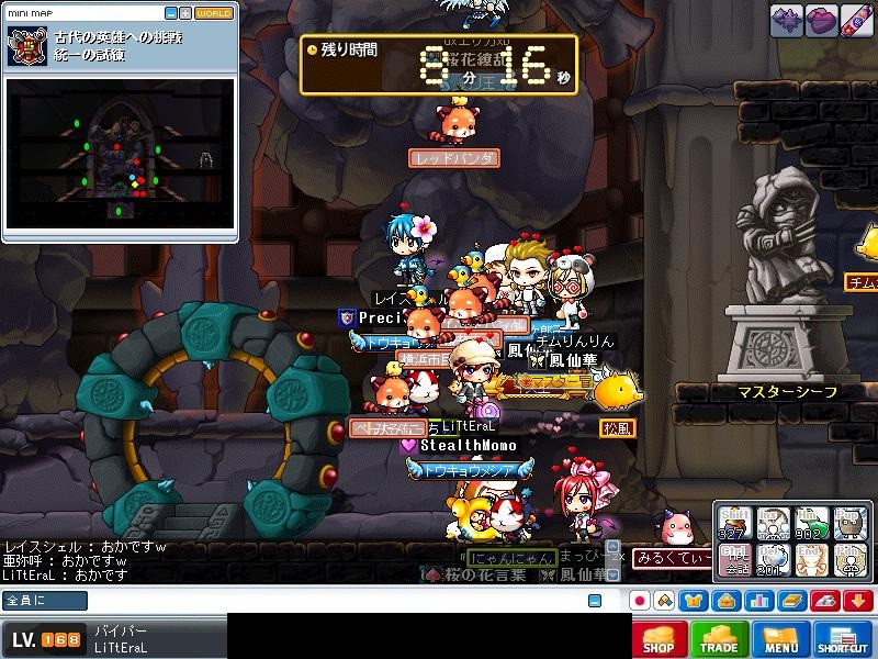 このボスは、タゲを取った状態で一定距離まで近づくと何か攻撃をしてきて、それに当たると落ちる+BANみたいなので、基本は遠距離のみの参加です。